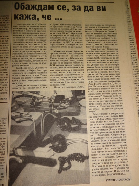 Ползата за мен беше огромна. Не само защото стоене на телефоните на слушателя е добиване на ценен опит от тази обратна връзка. А и защото в края на този мой необичаен мандат там, попитах дали мога да сътруднича?! Да, разбира се, давай, но ги напиши горе-долу нещата, за да видим какво си ни подготвил, и, ако е необходимо, нещо да коригираш. Добре. След няколко дни започнах да нося репортажи, анкети, интервюта, още репортажи. Най-напред Чавдар прочете първия, нахвърлян на машинопис текст, не намери кусур и ме изпрати да го монтирам. Вторият ден Петко хвърли едно око, след което ми заявиха, че всичко е наред и направо да нося сглобените ленти – с обявяванията, разбира се. И така…тези хора тогава ме престрашиха да работя за любимото ми до днес предаване. Моят проблем беше, че не знаех с кого да се съизмеря, от кого по коридорите на репортерите да се уча и въобще какво точно да правя, до колко се харесва или не се нрави?! Някакси налучквах изискванията слепешката. Докато един ден Галя Спасова не ми заяви буквално следното: „Стоичков, ти се великолепен репортер! Няма на етажа на „Хоризонт“ такъв!“ По-изумен и изненадан никога не съм бил…
